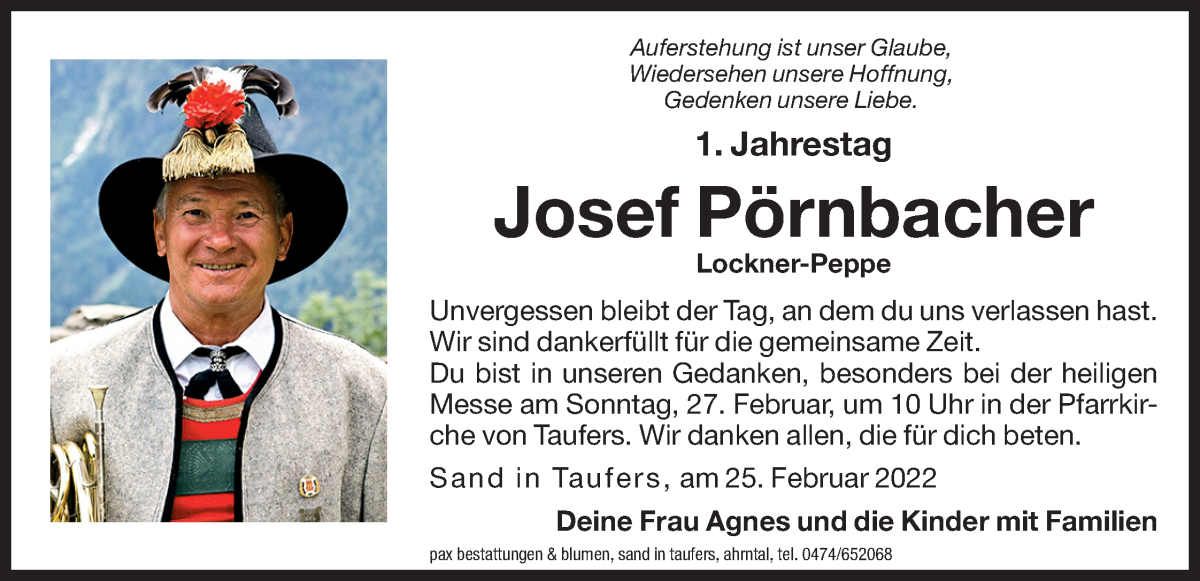 Ich werde Peppe als vorbildlichen Musikanten in Erinnerung behalten. Mein aufrichtiges Beileid. Helmuth Erlacher